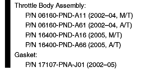 2005 RSX A/T - From VIN JH4DC548.58000001 thru JH4DC548.58009761