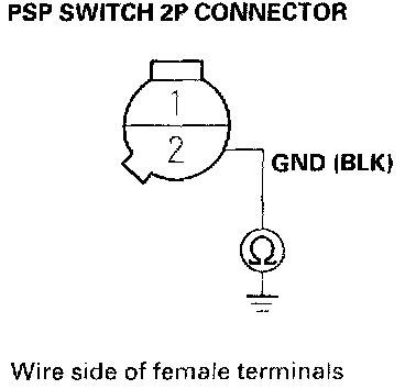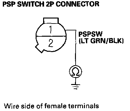 11. Check for continuity between PSP switch 2P connector terminal No.1 and body ground.