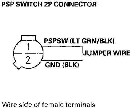 17. Remove the jumper wire from the PSP switch 2P connector.