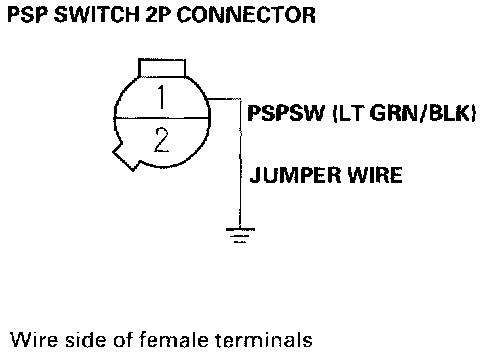 14. Connect PSP switch 2P connector terminals No.1 and No.2 with a jumper wire, then start the engine.