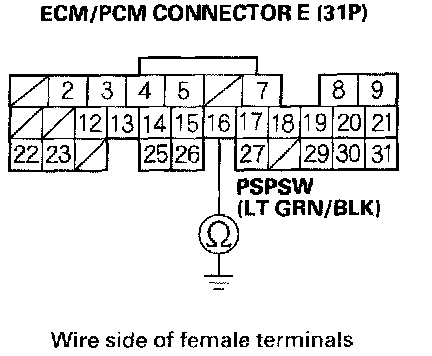 20. Connect PSP switch 2P connector terminal No.1 to body ground with a jumper wire.