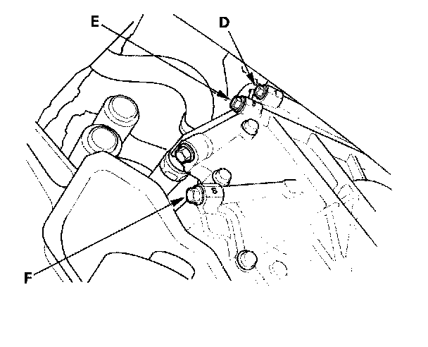 7. Connect the oil pressure gauges to the 1st clutch pressure inspection hole (D), 3rd clutch pressure inspection hole (E), and 5th clutch pressure inspection hole (F).