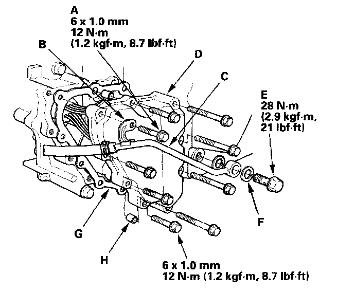 6. Remove the shift solenoid valve cover, gasket (G), and dowel pins (H).