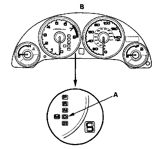 How to Check for DTCs with the SCS Mode (retrieving the flash codes)When the PCM senses an abnormality in the input or output system, the D indicator (A) in the gauge assembly (B) will usually blink.