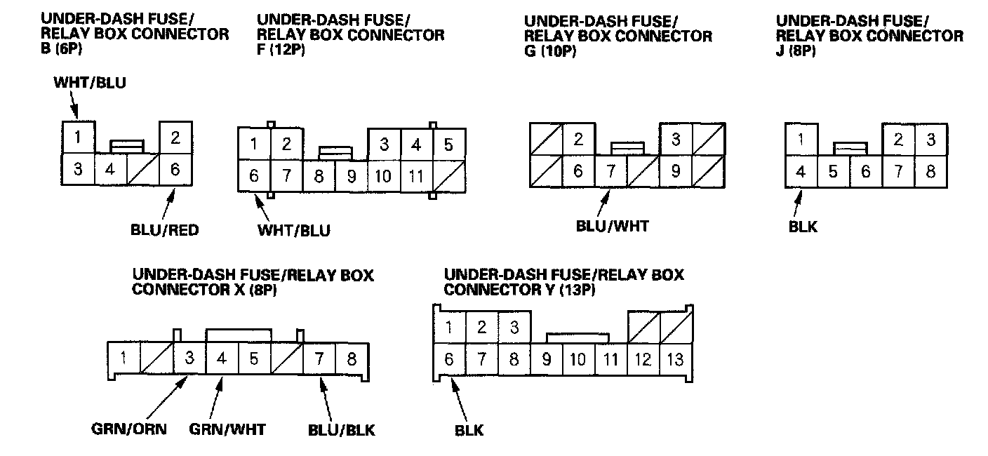 3. Disconnect the under-dash fuse/relay box connectors B, F, G, J, X and Y.