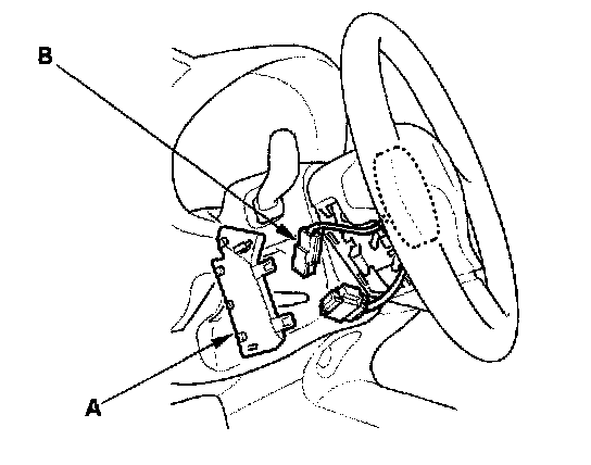 4. Remove the access panel (A) from the steering wheel, then disconnect the driver's airbag 4P connector (B) from the cable reel.