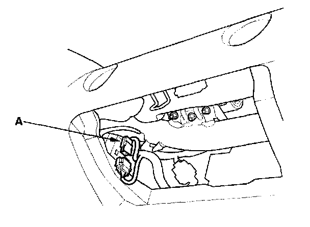 5. Remove the glove box, then disconnect the front passenger's airbag 4P connector (A) and dashboard wire harness.