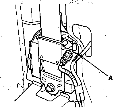 8. Disconnect the seat belt buckle tensioner 4P connector (A) from floor wire harness.