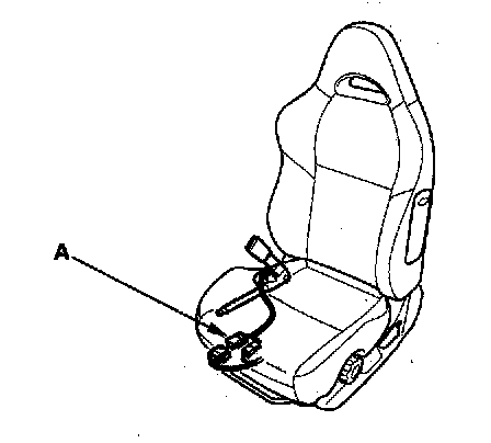 6. Disconnect the side airbag 2P connector (A) from the floor wire harness.