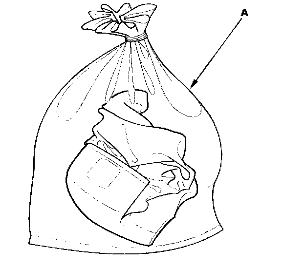 12. Dispose of the complete airbag. No part of it can be reused. Place it in a sturdy plastic bag (A), and seal it securely. Dispose of the deployed airbag according to your local regulations.