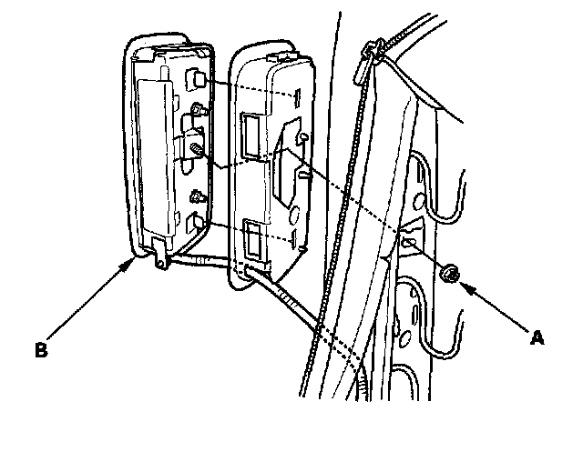 4. Remove the mounting nut (A) and the side airbag (B).