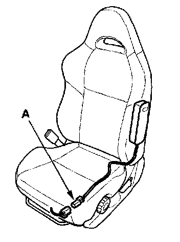 4. Disconnect both side airbag 2P connectors (A) from the floor wire harness.