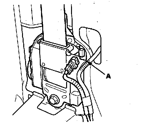 6. Disconnect both seat belt buckle tensioner 4P connectors (A).