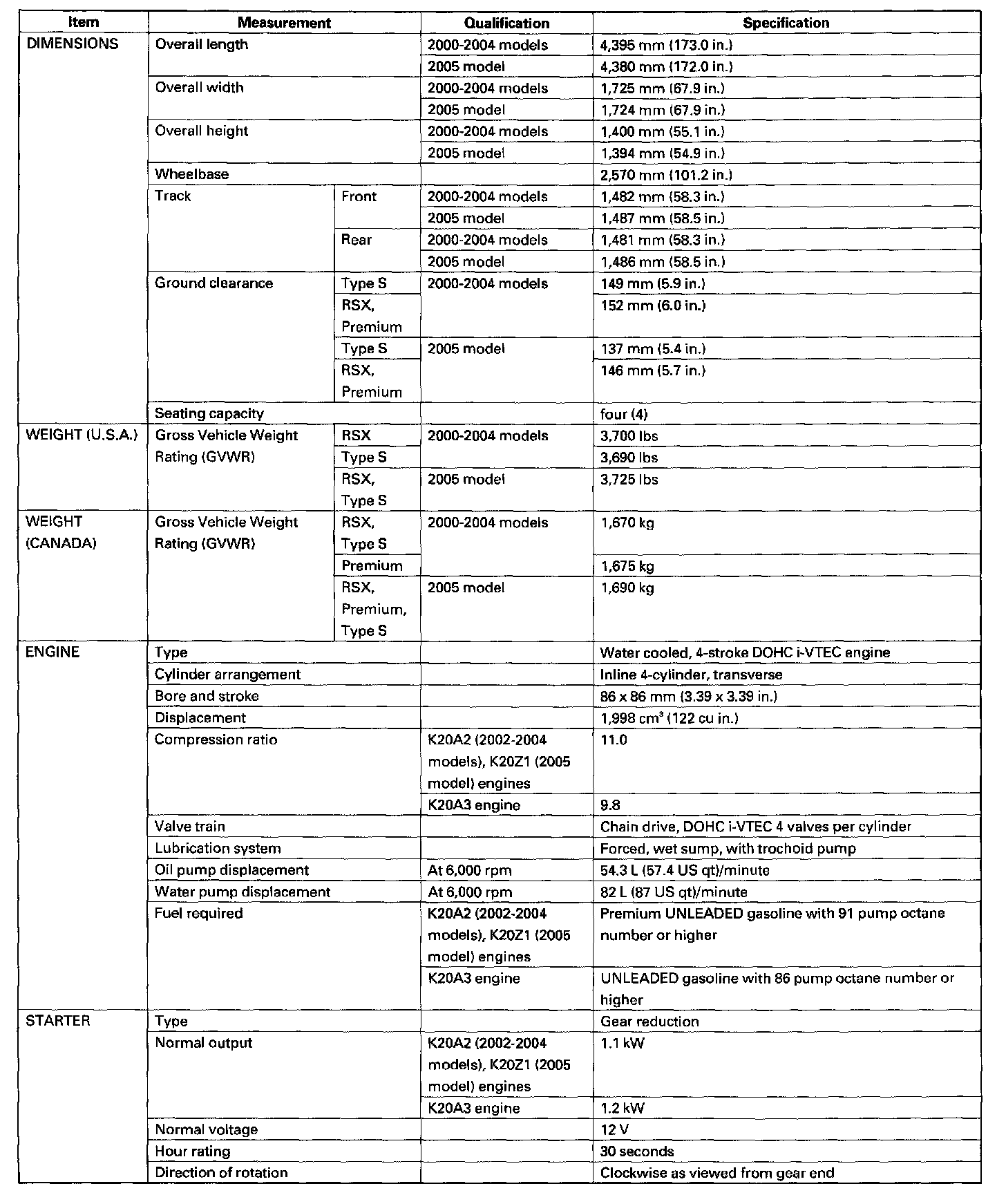 RSX L4-2.0L