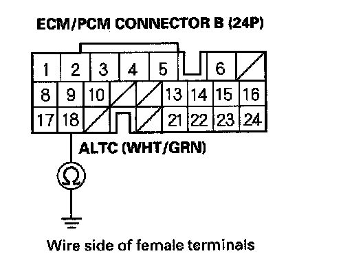 8. Check for continuity between ECM/PCM connector terminal B18 and body ground.