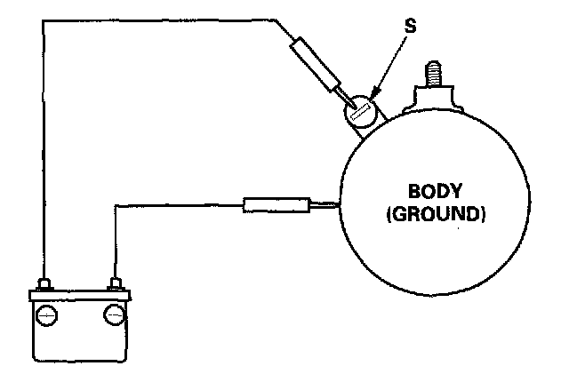3. Connect the battery as shown. If the starter pinion moves out, it is working properly.