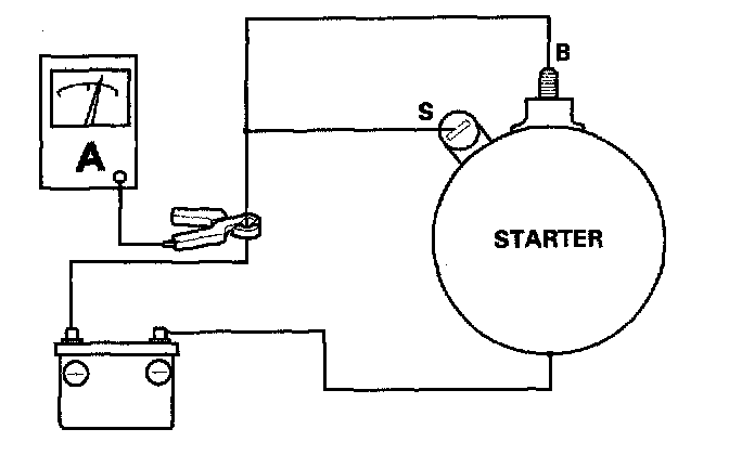 7. If the electric current and motor speed meet the specifications when the battery voltage is at 11.5 V, the starter is working properly.