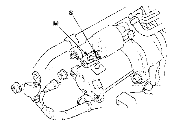 3. Disconnect the S and M connectors from the starter solenoid.