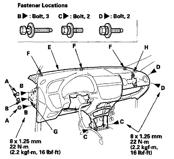 - Apply liquid thread lock to the dashboard mounting bolts of the middle portion before reinstallation.