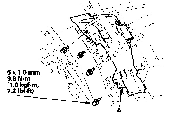 8. Tighten the rack guide screw (A) to 25 Nm (2.5 kgf-m, 18 ft. lbs.) then loosen it.
