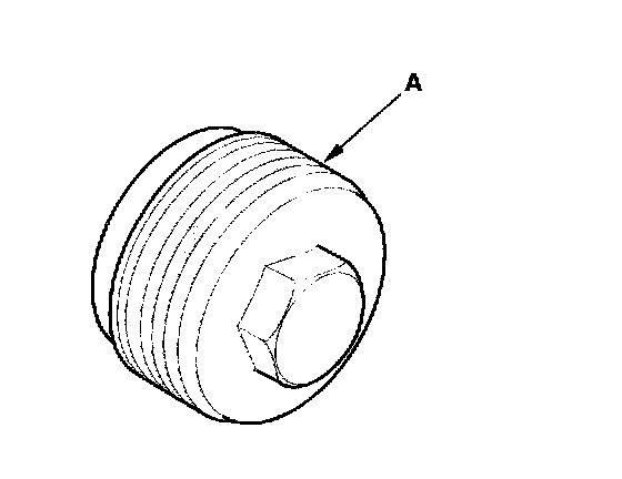 7. Remove the old sealant from the rack guide screw, and apply new sealant to the middle of the threads (A). Loosely install the rack guide screw on the steering gearbox.