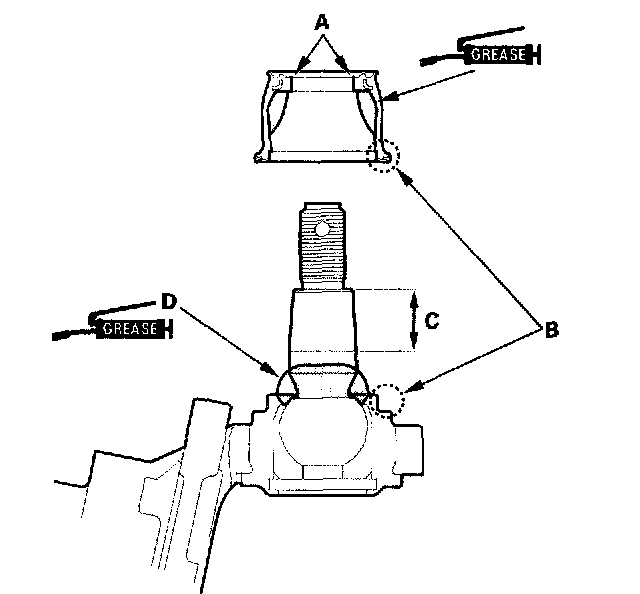 3. Wipe the grease off the tapered section of the pin (C), and pack fresh grease onto the base (D).