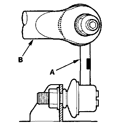 3. Install the stabilizer link (A) on the stabilizer bar (B) and trailing arm with the joint pins set at the center of their range of movement.