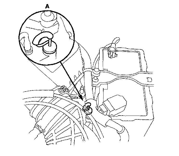 3. Remove the dipstick (yellow loop) (A) from the transmission, and wipe it with a clean cloth.