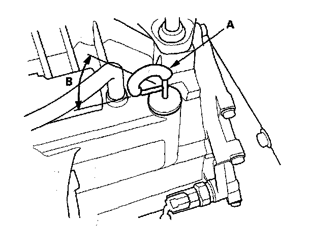 8. Insert the dipstick (A) back into the transmission in the direction (B) shown.