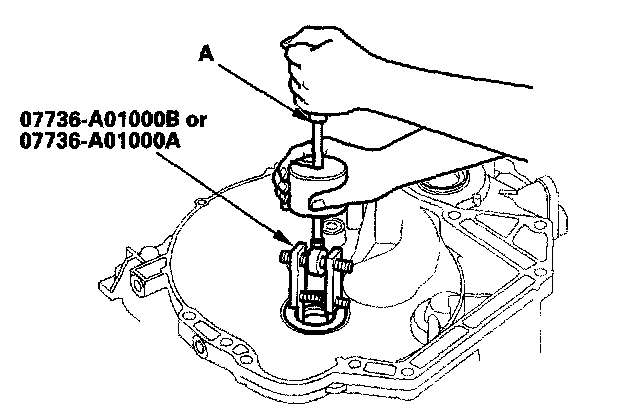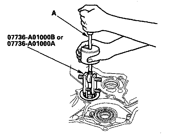 1. Remove the mainshaft bearing and oil seal with the special tool and a commercially available 3/8 - 16" slide hammer (A).