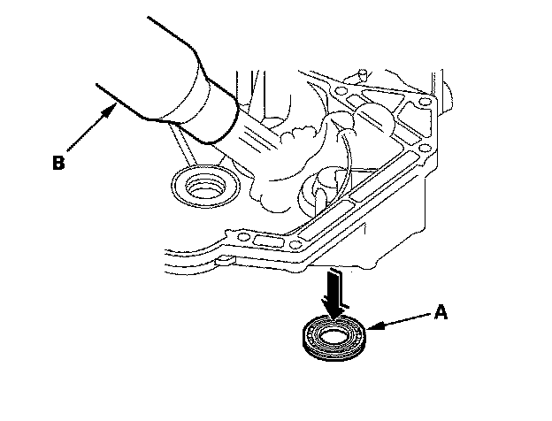 1. Remove the oil seal (A) from the torque converter housing (B).