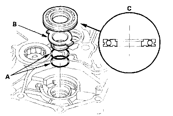 4. Install the new secondary shaft bearing (C) in the direction shown.