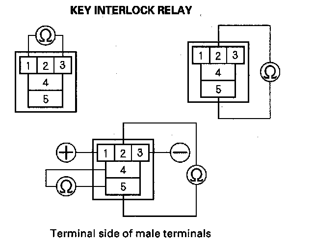3. Remove the key interlock relay, and check for continuity between these terminals: