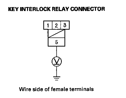 5. Measure the voltage between the No. 5 terminal of the key interlock relay connector and body ground.