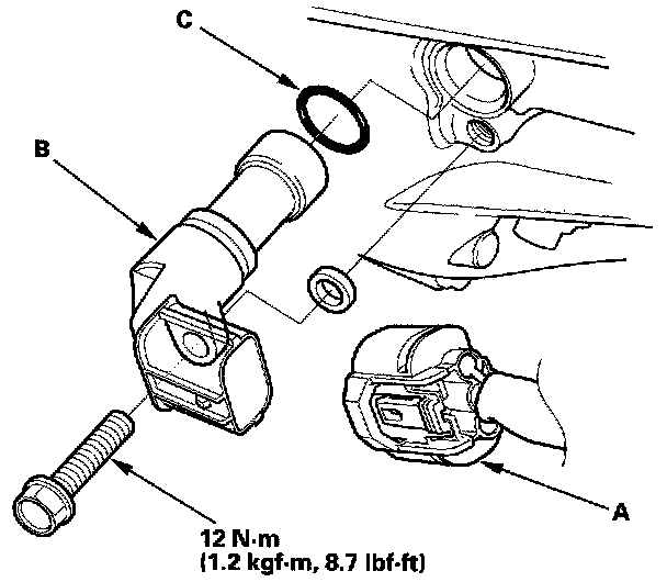 4. Install the sensor in the reverse order of removal with a new O-ring (C).
