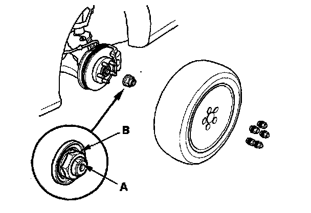 4. Lift up the locking tab (A) on the spindle nut (B), then remove the nut.