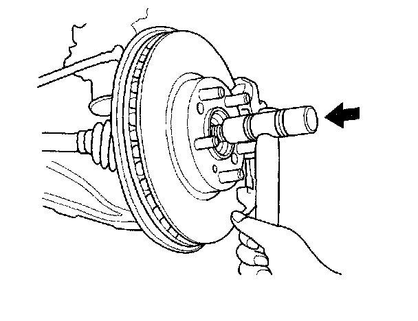 9. Pull the knuckle outward, and remove the driveshaft outboard joint from the front wheel hub using a plastic hammer.