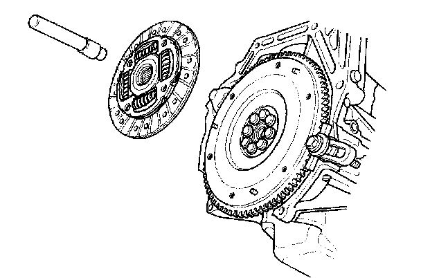 1. Temporarily install the clutch disc onto the splines of the transmission mainshaft. Make sure the clutch disc slides freely on the mainshaft.