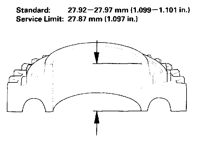 - If the thickness is within the service limit, replace the 1st/2nd synchro hub.