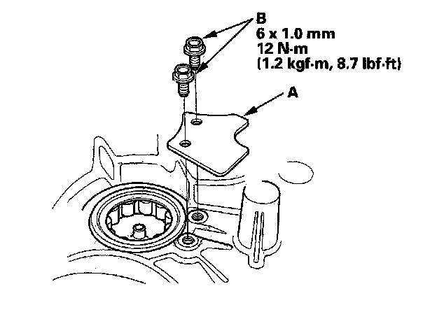 5. Install the bearing set plate (A) with the bolts (B).