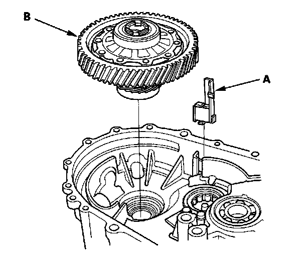 1. Install the magnet (A) and the differential assembly (B).
