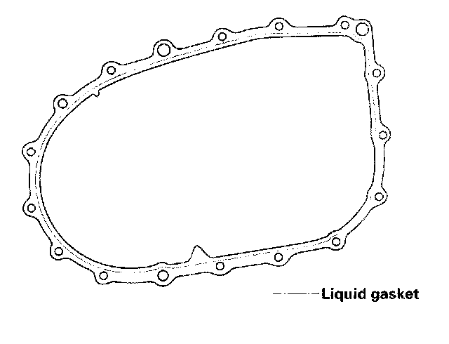 8. Remove any dirt and oil from the transmission housing sealing surface. Apply liquid gasket (P/N 08718-0001) to the sealing surface. Make sure you seal the entire circumference of the bolt holes to prevent oil leakage.