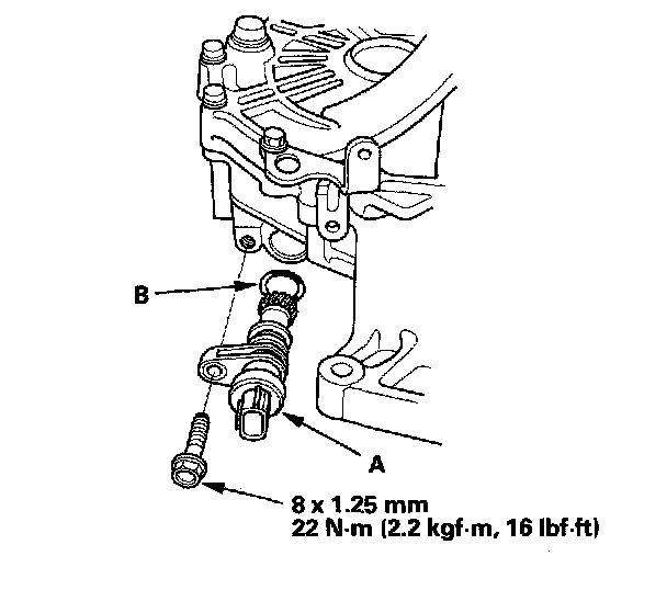 23. Install the vehicle speed sensor (VSS) (A) and the O-ring (B) (2002-2004 models).