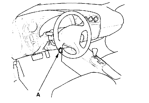 When the Honda diagnostic system (HDS) is connected to the data link connector (DLC) (A) (located under the dash behind the center console), it will indicate the diagnostic trouble code (DTC) when the ignition switch is turned ON (II).