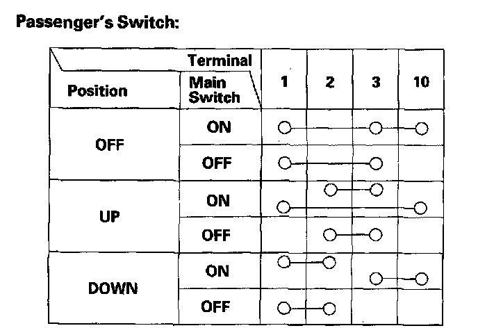 5. If the continuity is not as specified, replace the passenger's switch.