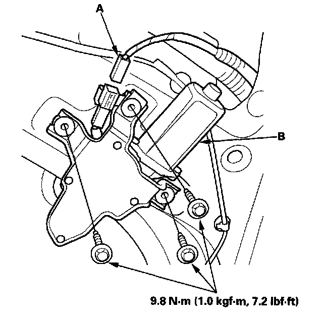3. Disconnect the 5P connector (A) from the wiper motor (B).