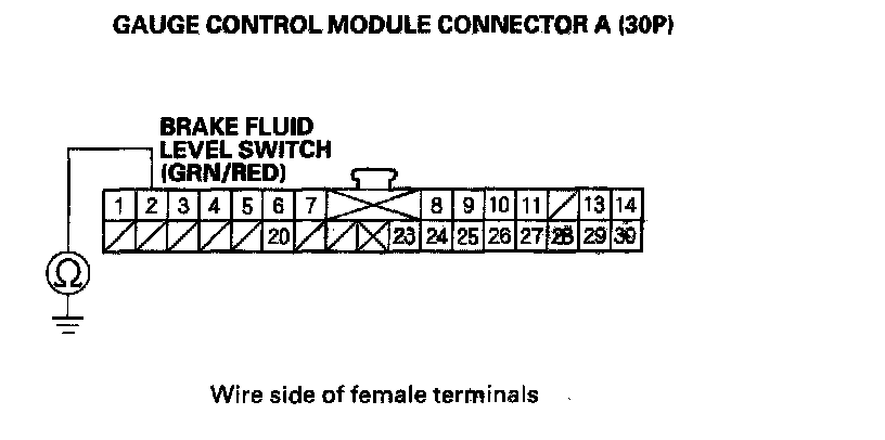 2. Disconnect the gauge control module connector A (30P), and brake fluid level switch 2P connector.