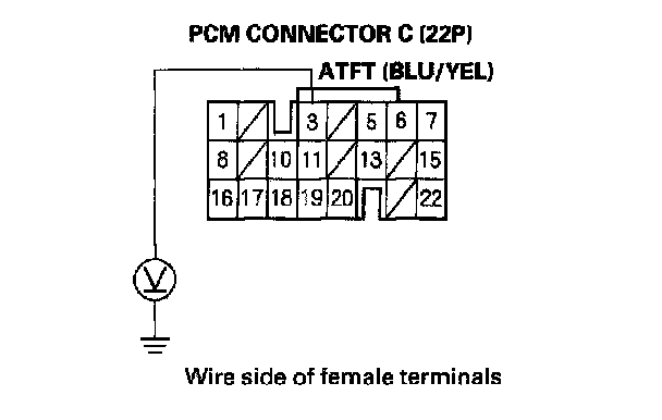7. Measure the voltage between PCM connector terminal C3 and body ground.
