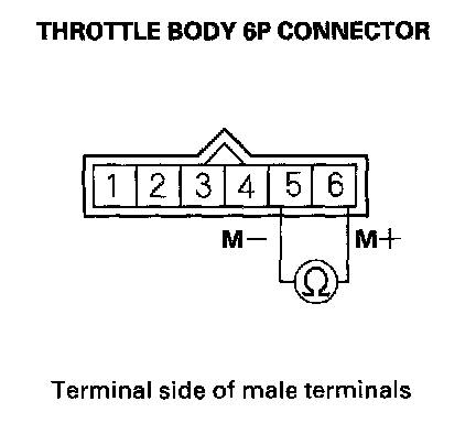 4. At the throttle body side, measure resistance between throttle body 6P connector terminals No.5 and No.6 with the throttle fully closed.