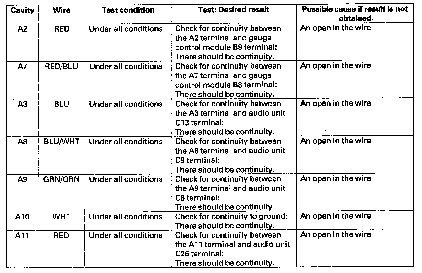 - If all the input tests prove OK, go to navigation system and climate control. If the navigation system and climate control system are OK, replace the display panel control unit.